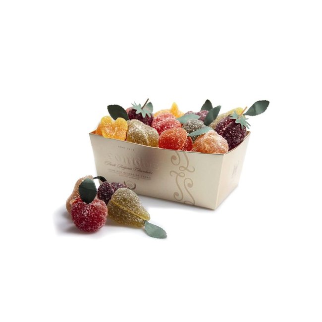Gleich einem Korb frischer Früchte, verwöhnen Sie die feinen Geleefrüchte von Leonidas mit ihrem süssen, fruchtintensiven Aroma. Es gibt sie in den Sorten: Ananas, Kirsche, Feige, Erdbeere, Pfirsich, Mandarine, Birne und Apfel. Eine köstliche Art, Früchte aus nahen und fernen Regionen (neu) zu entdecken.