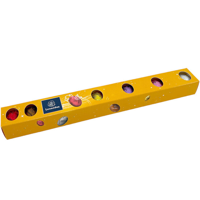 Zutaten und Allergene: Zucker, Kakaomasse, Kakaobutter, Vollmilchpulver, Haselnüsse, Milchcreme, Cuberdonsirup (Glukosesirup, Glukose, Aromen, Farbstoff: Karminsäure, pflanzliche Kohle), wasserfreie Butter, Butter, Glukosesirup, gezuckerte Kondensmilch, Emulgator : Sojalecithin, Invertzucker, Sorbitsirup, Karamelpulver mit Milchfett (Magermilchpulver, Molkepulver (Milch), Zucker, wasserfreies Milchfett, natürliches Aroma), Zitronat, Weizenmehl, Kaffee, Mandeln, Aromastoffe, Reismehl, Dextrose, Glukose-Fructose-Sirup, mageres Kakaopulver, Zuckerrohr, Feuchthaltemittel : Sorbit, Honig, pflanzliches Glycerin, Laktose, Konservierungsmittel : Kaliumsorbat, alkalisiertes Kakaopulver, Himbeeren, konzentrierter Himbeersaft, karamellisiertem Zucker, Säuerungsmittel : Zitronensäure, Invertase, Aprikosenkerne, Bittere Aprikosenkerne, Farbstoffe (Rot von Rote Beete, Kupferkomplexe der Chlorophylle), Salz, sauere Mandeln, Eiweiß (Ei), Guerande Salz, Zitronensaftkonzentrat, Backtriebmittel (Natriumpyrophosphat, Natriumbicarbonat), modifizierte Stärke, Kohlendioxid, Verdickungsmittelen (Agar, Pektine), Pflanzenkonzentrat (Karotte, Hibiskus), Pektin, Extrakt Von Curcumin. Mit Milchschokolade (mind. 30% Kakaoanteil, mind. 22% Milchanteil), Zartbitterschokolade (mind. 54% Kakaoanteil), weißer Schokolade (mind. 25% Kakaoanteil, mind. 22% Milchanteil), Weiße Schokolade mit Karamell (mind. 26% Kakaoanteil). Kann Spuren von Nüssen (Pistazie, Walnuss).