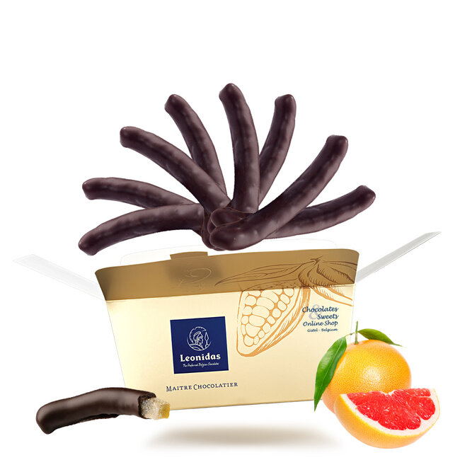 Gekonfijte pompelmoesschil omhuld met pure chocolade.